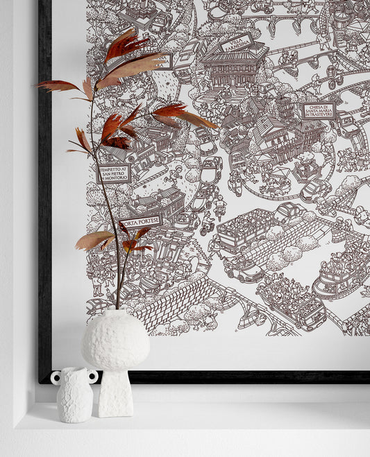 Rome City Poster. Ballpoint drawing. Museum-Quality Matte Paper Poster 70x100 cm / 28x40″