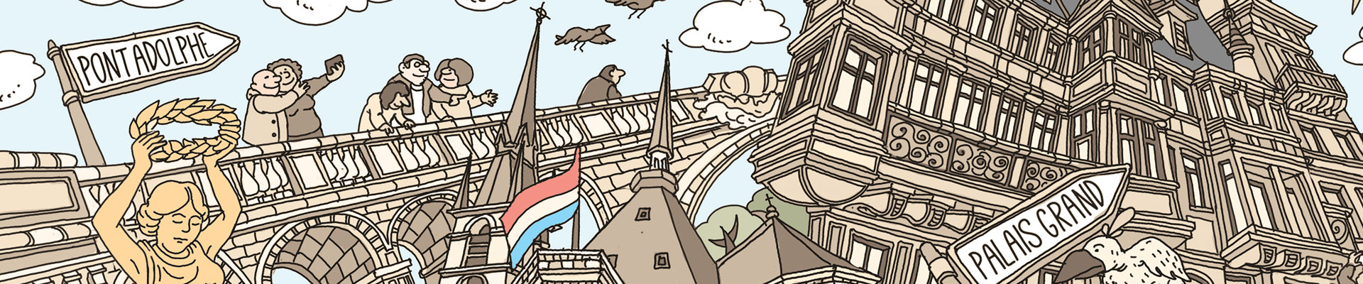 Experience the quiet elegance of the our Luxembourg souvenir collection. Rendered in a sophisticated, hand-drawn style, this series reimagines the city’s historic fortifications and modern charm through clean, minimalist lines. Learn more about the Urban Cartoonery project and the art behind our city maps.