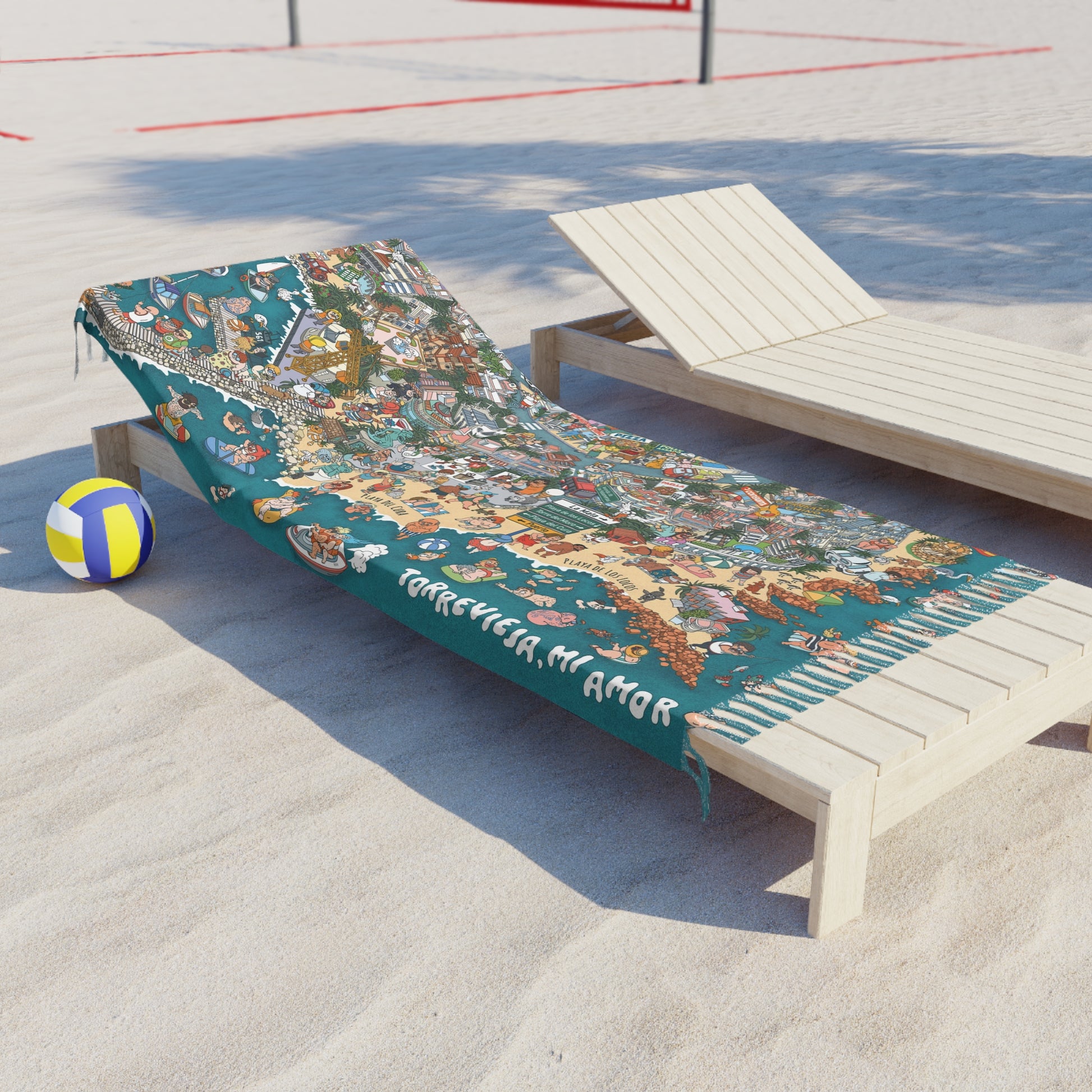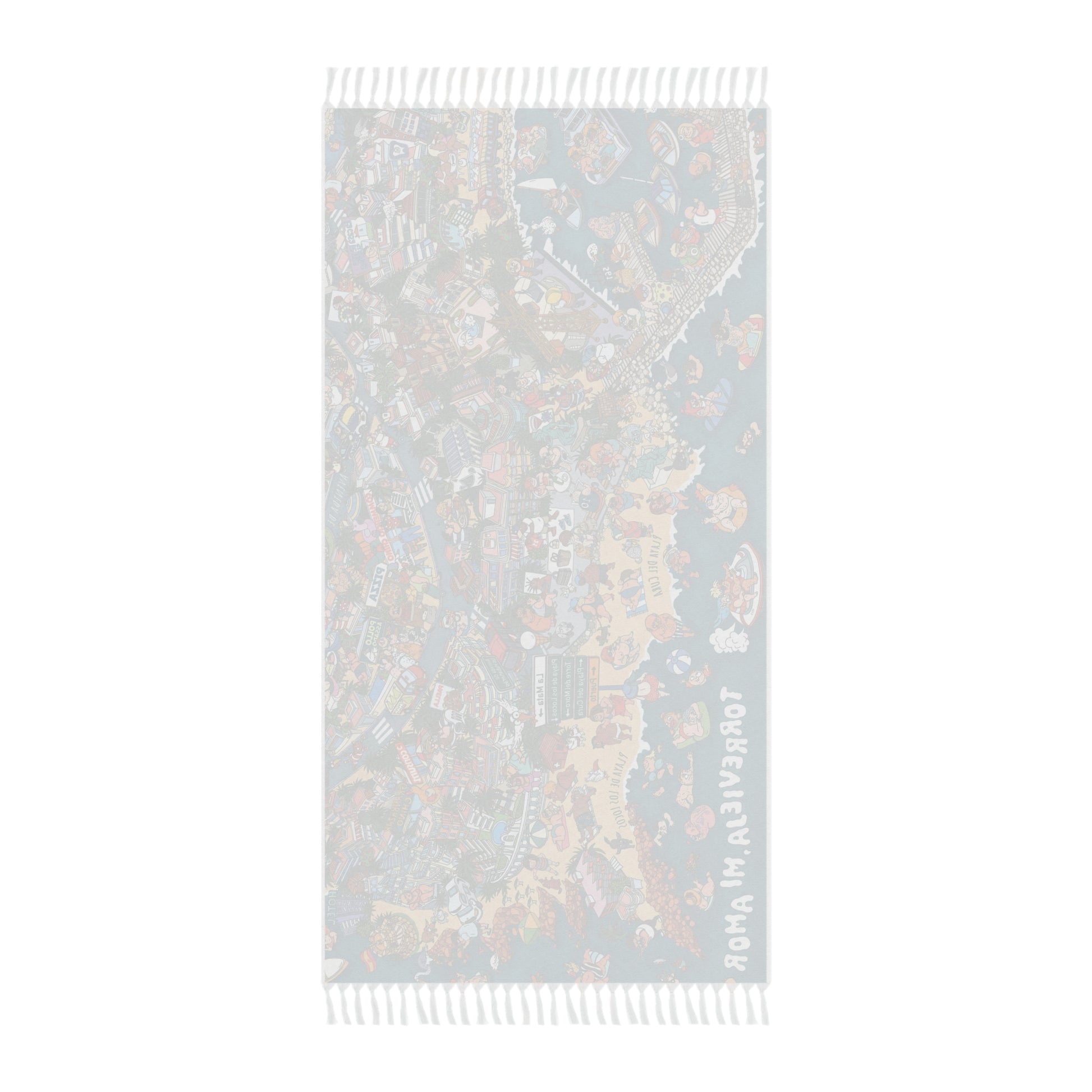 Boho Beach Towel — Colorful Aloha Island Map Beach Cloth with Fringe